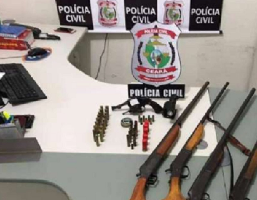 A Polícia Civil prendeu quatro homens e apreendeu sete armas e várias munições em propriedades rurais de Jucás, na Região Centro-Sul do Estado, nesta quarta-feira (8).