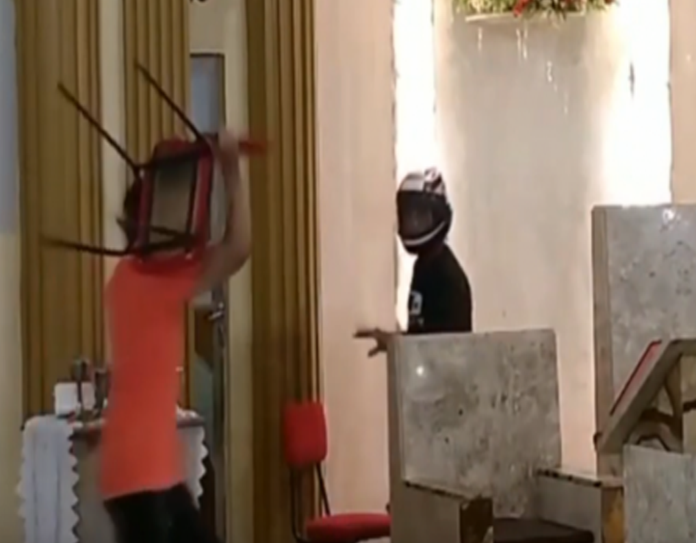 Depois de constatar que o homem não estava armado, uma multidão de fieis o deteve e ele foi levado para fora da igreja até que a polícia chegasse.
