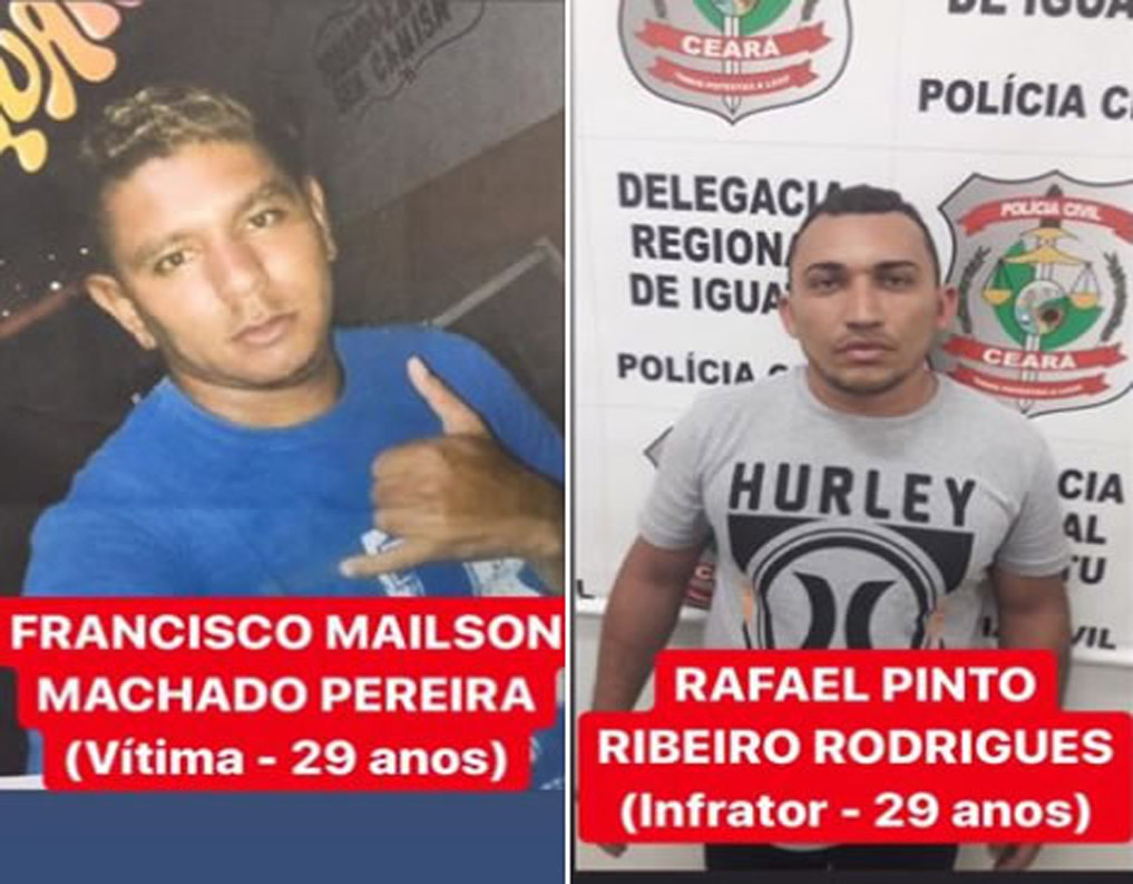 Na tarde desta quarta-feira (28), a equipe de investigações da Delegacia Regional de Polícia Civil de Iguatu/CE prendeu em flagrante a pessoa de RAFAEL PINTO RIBEIRO RODRIGUES (29 anos) por ter assassinado e ocultado o cadáver da pessoa de FRANCISCO MAILSON MACHADO PEREIRA (29 anos) vulgo “NIM”, fato ocorrido na madrugada no dia 25/08/2019, em Iguatu/CE.
