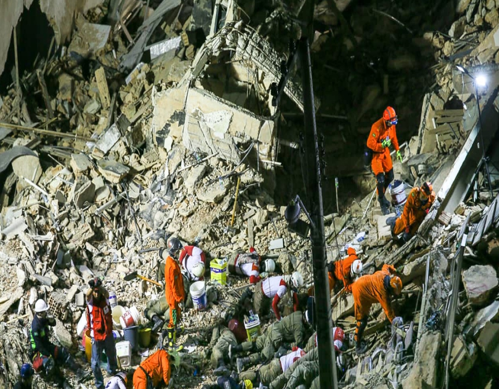 O trabalho para resgatar possíveis sobreviventes segue incessante nos escombros do Edifício Andrea, no bairro Dionísio Torres, em Fortaleza. Toda chance de vida é celebrada no local. No fim da noite dessa quarta-feira, a possibilidade de comunicação de uma vítima com o Corpo de Bombeiros intensificou ainda mais os trabalhos. Sobre os escombros, foi possível ouvir os gritos dos profissionais tentando manter o contato.