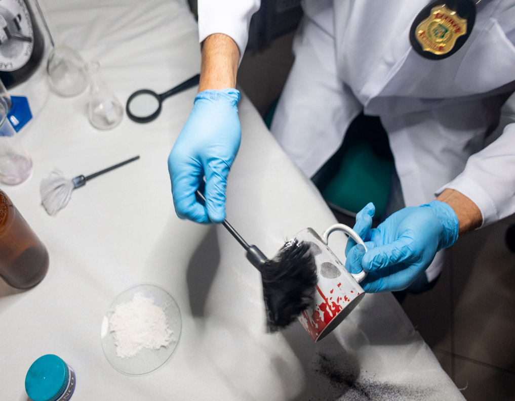 Contudo, para que essas perícias aconteçam são necessários instrumentos e materiais específicos, que não são tão acessíveis. Basicamente, são utilizados pós reveladores, lanternas especiais e pincéis. Destes materiais, o ‘pó revelador’ é o insumo que precisa ser reposto com uma maior frequência devido à quantidade de demandas que a Pefoce recebe. Atentando para este detalhe, Paulo Harison, profissional em papiloscopia do LIP, pesquisou métodos e substâncias que pudessem substituir o material adquirido pelo Estado.