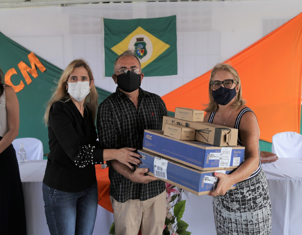 Composto de computador, câmera e tripé, o kit dará apoio às unidades de ensino na gravação de atividades escolares. A ação visa potencializar o trabalho do professor para a melhoria da qualidade das aulas online transmitidas aos alunos cearenses.