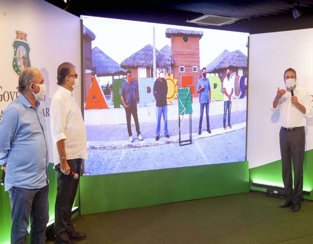 O Governo do Ceará entregou nesta quarta-feira (30), a urbanização da Praia de Arpoeiras, em Acaraú, que compreende um investimento de quase R$ 9 milhões, com obras de calçamento, 11 quiosques na praia, iluminação, paisagismo, estacionamento para mais de 100 veículos e um muro de contenção para evitar erosão e enchentes na região. O evento foi realizado de forma virtual, direto do Palácio da Abolição, com a presença do governador Camilo Santana, do assessor especial de relações institucionais da Casa Civil, Nelson Martins, e do secretário do Turismo, Arialdo Pinho, e um link direto com a cidade de Acaraú.