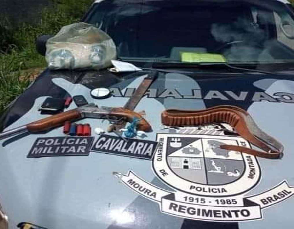 A Polícia Militar do Ceará (PMCE), por meio de uma composição do Regimento de Polícia Montada (RPMont), prendeu na manhã deste domingo (10), no Crato, um homem com uma arma escopeta calibre 12 artesanal, quatro munições intactas, um facão, uma balança de precisão, caderneta com anotações, 3,20 gramas de maconha, cachimbo artesanal e um aparelho celular.