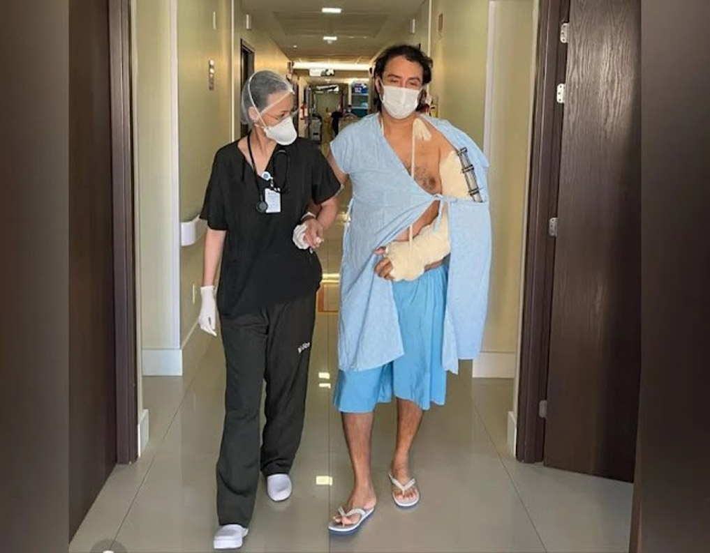 O último boletim médico divulgado pelo hospital informou que o artista estava em rotina de fisioterapia motora e já conseguia realizar movimentos com o auxílio de outras pessoas, como levantar-se, sentar-se e andar fora do leito.