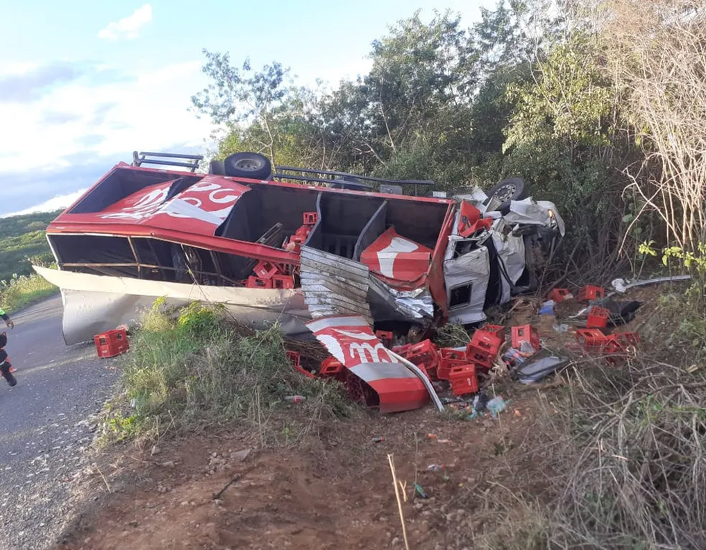 Um caminhão carregado de refrigerantes tombou na rodovia CE-153, na cidade de Solonópole, no interior do Ceará, na tarde desta quarta-feira (21). Os três trabalhadores que estavam no veículo ficaram feridos e foram socorridos para hospitais da região.