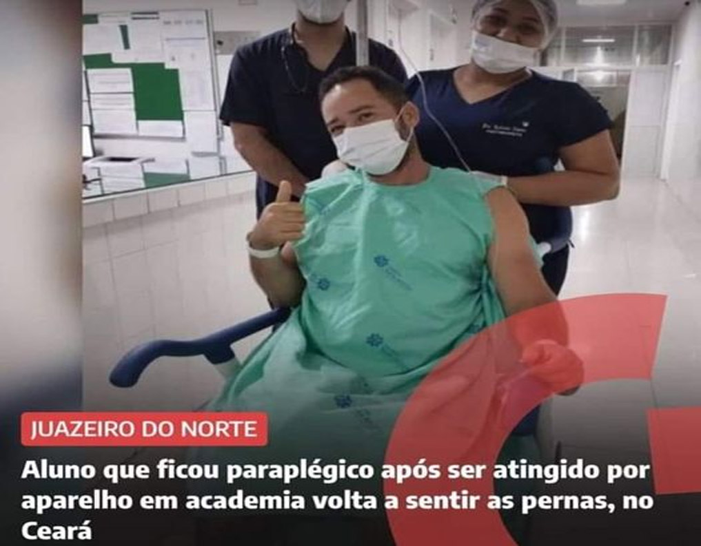 O acidente aconteceu em 4 de agosto numa academia em Juazeiro do Norte, no Ceará. Regilânio da Silva Nascimento, de 42 anos, estava sentado no aparelho quando uma barra que sustentava um peso de 150 quilos atingiu os ombros dele, fraturando a coluna.