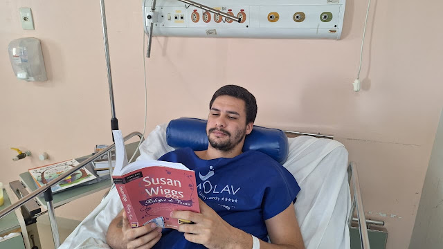 Internado no Hospital Regional do Cariri (HRC), unidade da Secretaria da Saúde do Ceará (Sesa), o paciente Mateus Barreto, 27, natural de Icó, encontrou na leitura uma forma de transformar a rotina hospitalar. O jovem, que trabalha na construção civil, sofreu um acidente de moto que resultou em fratura no quadril, deixando-o temporariamente restrito ao leito. A equipe assistencial apresentou a ele a biblioteca itinerante do HRC “Leitura em Movimento”, projeto que disponibiliza um acervo de livros e revistas para pacientes, acompanhantes e trabalhadores da unidade.