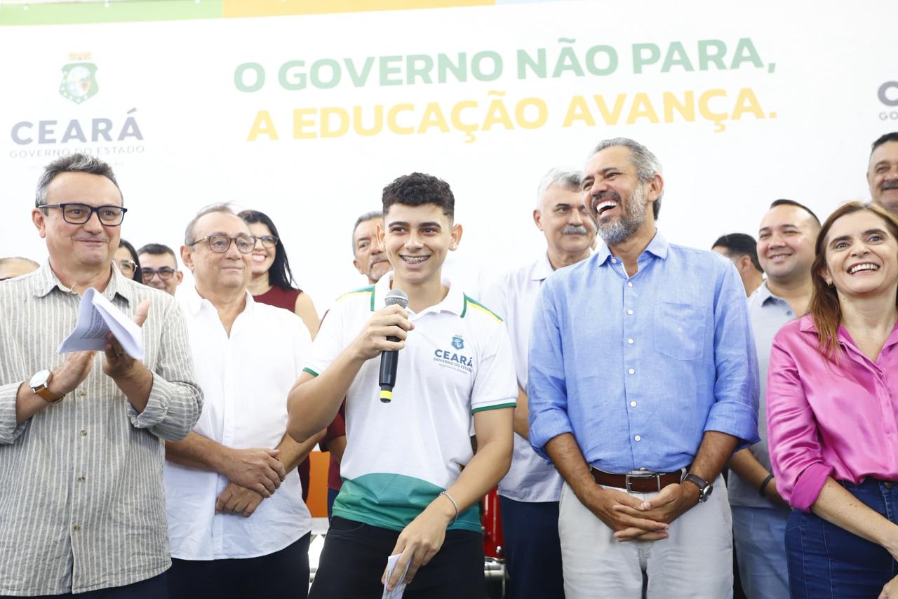 Ao discursar, o governador Elmano de Freitas destacou a alegria de participar da entrega da nova escola, que, segundo ele, representa mais um avanço na educação do Ceará. “É uma alegria muito grande estar aqui, garantindo a nossa juventude uma escola de qualidade, com a possibilidade de agora ter ensino em tempo integral. É para isso que nós estamos nesse processo no Ceará, que já apresenta resultados muito significativos, mas que pode avançar ainda mais. Estamos trabalhando para que a educação cearense continue se qualificando, melhore e possibilite aos nossos jovens a construção de seus sonhos”, ressaltou.
