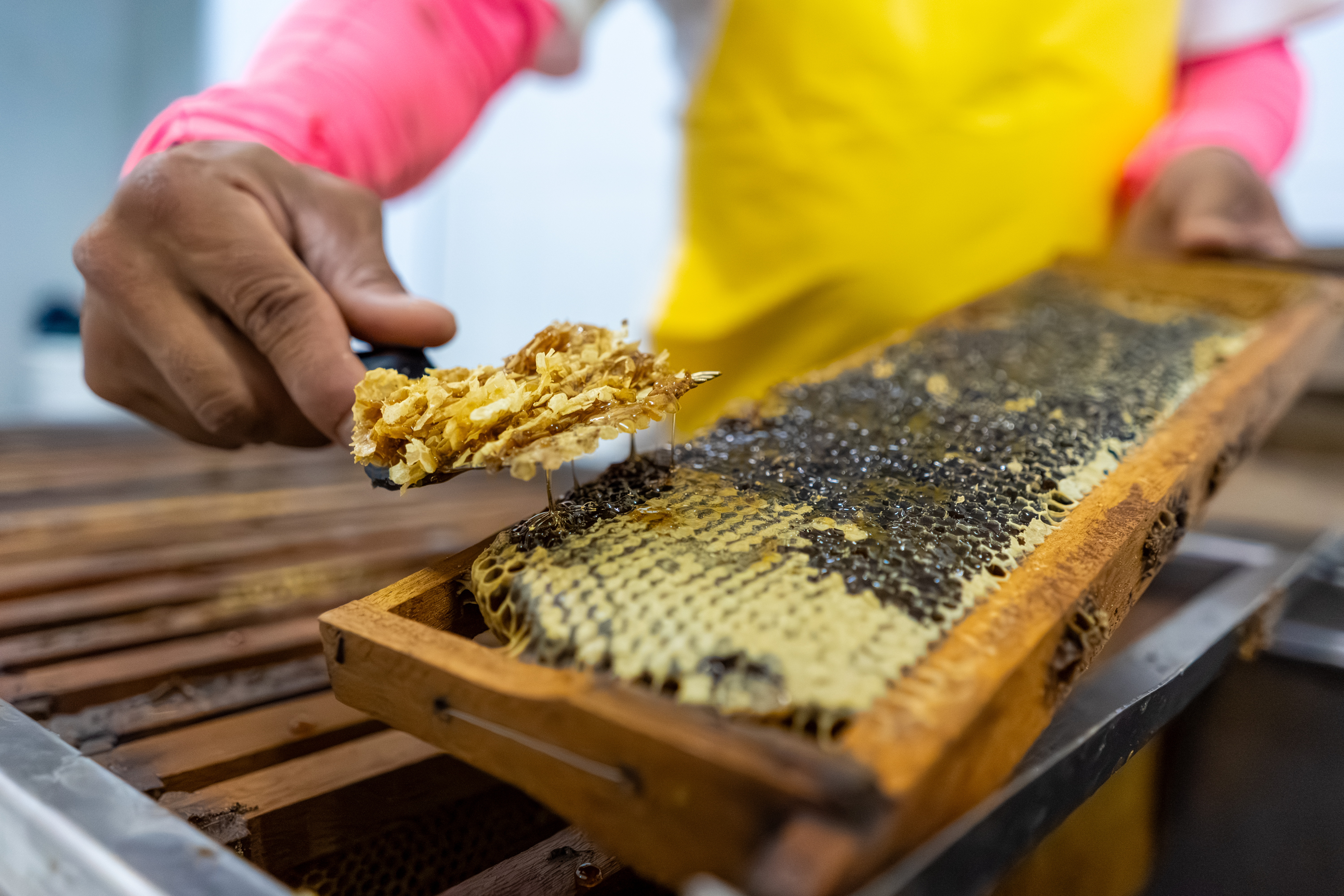 Processo de retirada dos favos para centrifugar o mel de aroeira – Foto: Rodrigo Carvalho