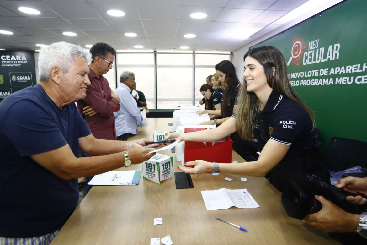 O Governo do Ceará chega à marca de mais de 13 mil celulares recuperados pelas Forças de Segurança do Estado desde o lançamento do programa Meu Celular, em 2024. Nesta terça-feira-feira (3), um novo lote, com cerca de 1.200 aparelhos, começou a ser entregue aos proprietários no Centro Integrado de Segurança Pública (Cisp), em Fortaleza. A ação foi conduzida pelo governador Elmano de Freitas, acompanhado do secretário da Segurança Pública e Defesa Social, Roberto Sá; do delegado-geral da Polícia Civil do Ceará, Márcio Gutiérrez; do comandante-geral da PMCE, coronel Sinval Sampaio; entre outras autoridades.